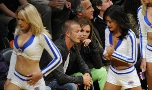 Existen muchos ejempos de lenguaje corporal. Y se podría comentar mucho sobre ellos. A continuación verá unas fotos de Beckham, dos animadoras y la mujer del famoso futbolista, Victoria.